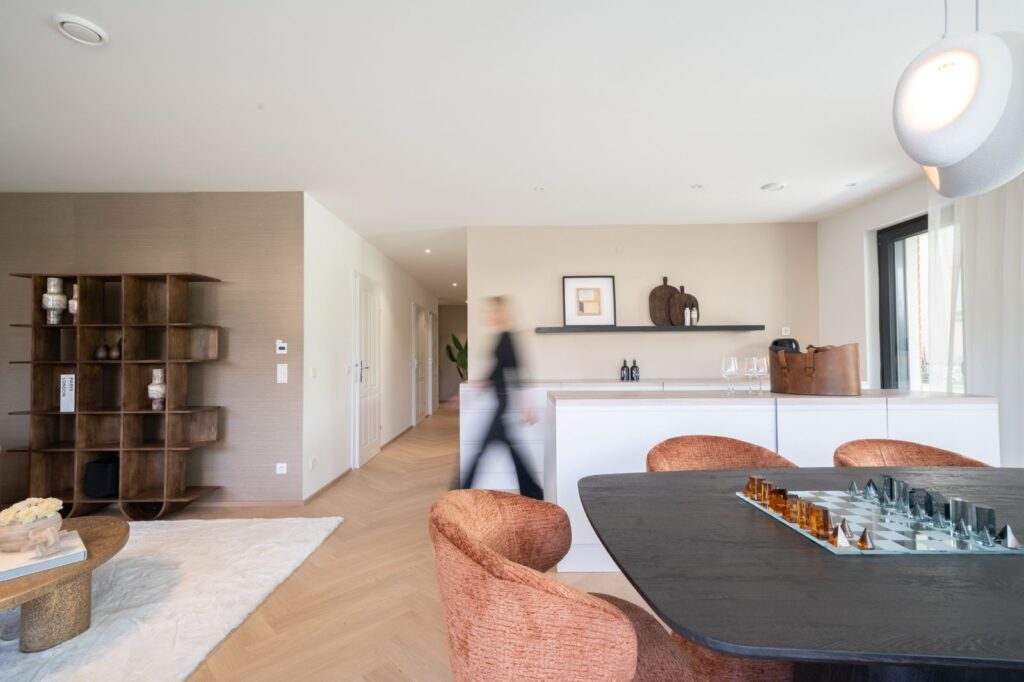 In unserem aktuellen Projekt zeigt ein einziger Moment genau das: Ein Mensch durchquert den Raum, kaum mehr als ein Schatten. Dieser Augenblick steht für das, was wir unter Home Staging verstehen – die Kunst, Atmosphäre sichtbar zu machen.